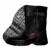 Сапоги кожаные, с укороченными регулируемыми по ширине кирзовыми голенищами, на пряжках, с поднарядом, жестким подноском, основной стелькой из нетканого стелечного материала, литьевого метода крепления, полиуретановая подошва: маслобензостойкая, износоустойчивая, кислотощелочестойкая. высота 25 см.