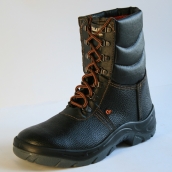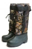 Зимний ботинок с высокими берцами, выполнен на основе галоши из ЭВА (этилвинилацетат) с верхом из водоотталкивающей ткани. Обувь имеет шнуровку по высоте и утеплена суконной вставкой Надежно защищает от влаги и мороза, за счет ярко выраженного рисунка подошвы, обладает противоскользящими свойствами. Имеет крайне малый вес