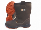 Сапоги европейского качества, коричневого цвета, изготовлены из натуральной кожи повышенной толщины «Crazy Horse», голенища с «ушками» и подкладкой, высотой около 245 мм, с облегченным композитным подноском ударной прочностью 200Дж, кевларовой антипрокольной стелькой, комфортной вкладной антистатической стелькой, на двухслойной полиуретановой подошве литьевого метода крепления, подошва (ПУ-ПУ): маслобензостойкая, износоустойчивая, кислотостойкая, антистатическая, с самоочищающимся профилем ходовой поверхности.