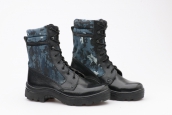 Верх изделия: натуральная тисненая кожа и ткань (город камуфляж) Высота берец 22 см.