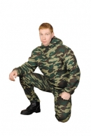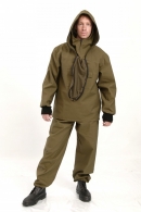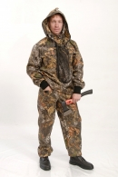 Куртка с капюшоном, со сьемной вставкой из противомоскитной сетки на молнии с накладным нагрудным карманом на клапане. Рукава с трикотажными манжетами. Брюки прямые с двумя накладными карманами с клапанами на передних половинах брюк с эластичной лентой в притачном поясе и по низу.